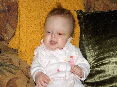 And she's eating little bits of solids! (As you might remember, she has some structural issues with her palette, so this is a huge step.)
